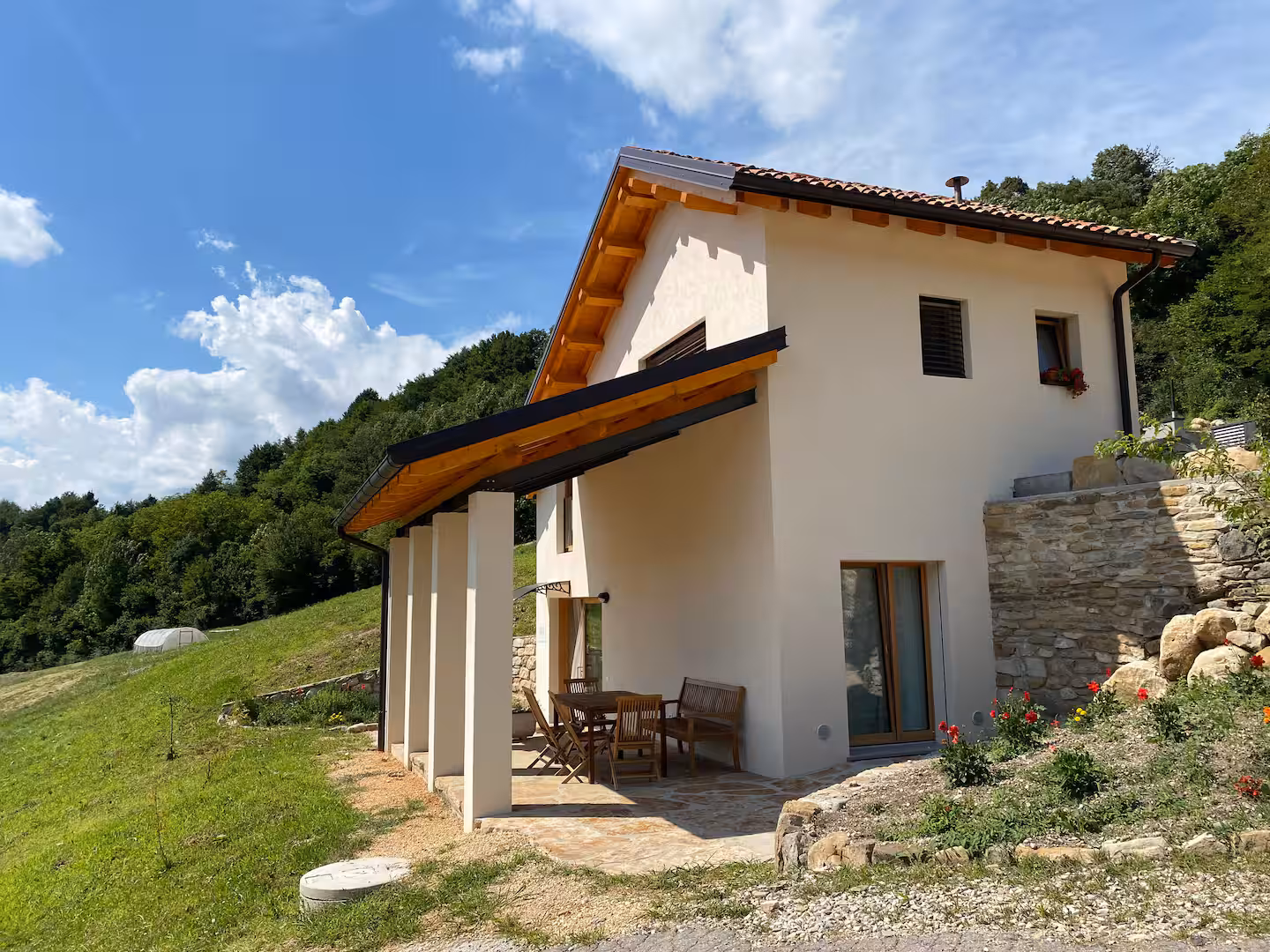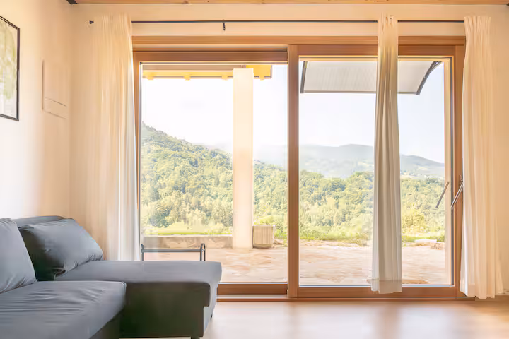 L’appartamento “La Cantina” è un bilocale composto da una zona giorno con angolo cottura, una zona notte ed un bagno con doccia. E’ stato completamente ricostruito nel 2024 e progettato per accogliere fino a 4 persone. E’ parte di un edificio di due appartamenti che, prima della ricostruzione, ospitava una cantina al piano terra ed un granaio al piano superiore. Fa parte di un piccolo borgo agricolo in cui insistono altri edifici residenziali ed è circondato da ben 3 ettari di terreno adibiti ad orto, a bosco, a prato. Tutto lo scenario d’intorno è composto da case sparse, da piccole aziende agricole e da molti chilometri quadrati di boschi e pascoli. E’ soleggiato ed esposto a sud per garantire, estate ed inverno, il massimo benessere.