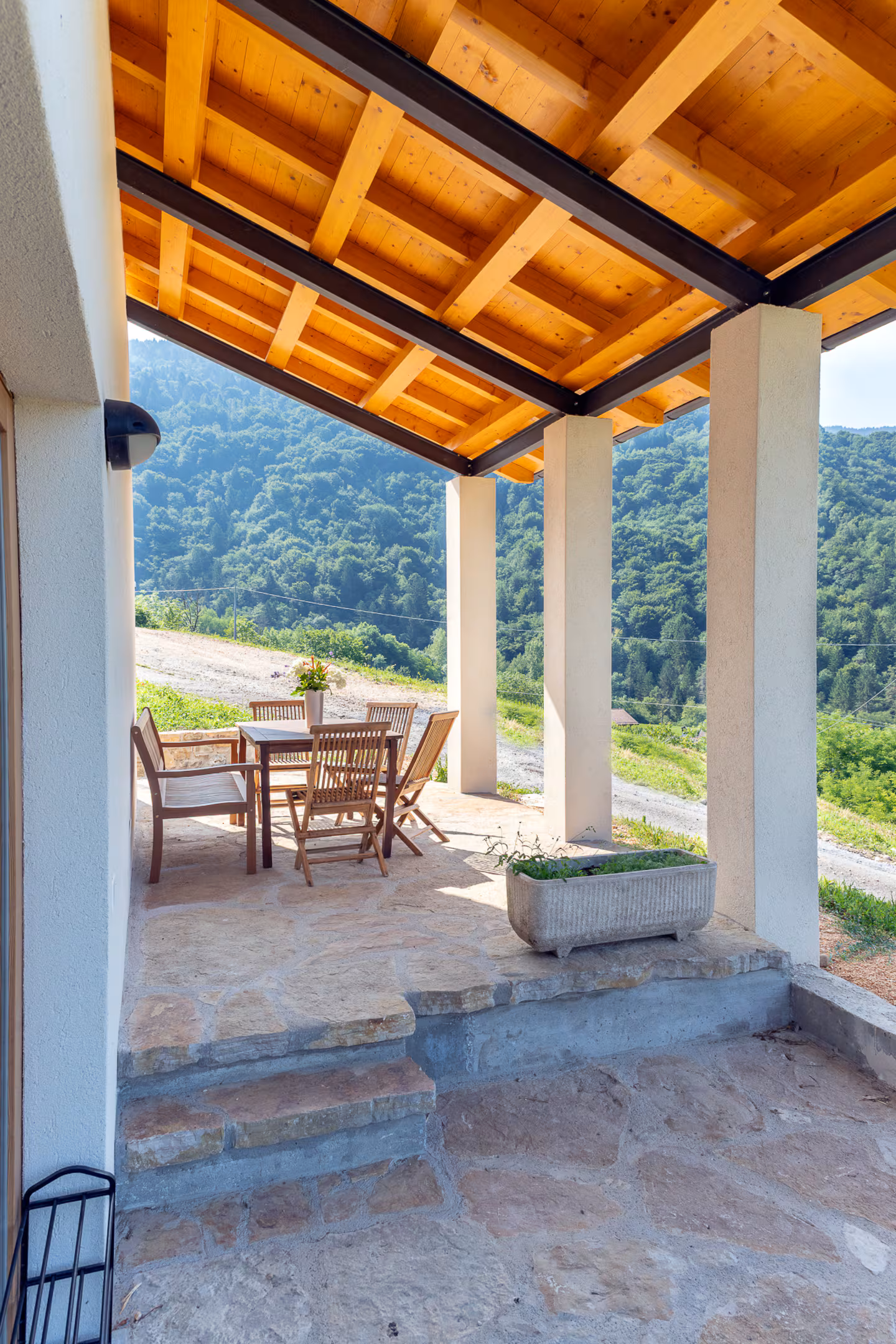 Possiede inoltre un portico esclusivo con tavolo e sedie per rilassarsi o lavorare.
